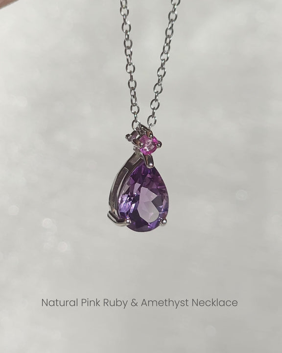 Este impresionante collar, hermoso y sin esfuerzo, está elaborado con amatista lavanda natural, una piedra preciosa de color púrpura pálido única. Está hecho a mano en plata esterlina maciza y chapado en rodio para un acabado brillante y durabilidad.