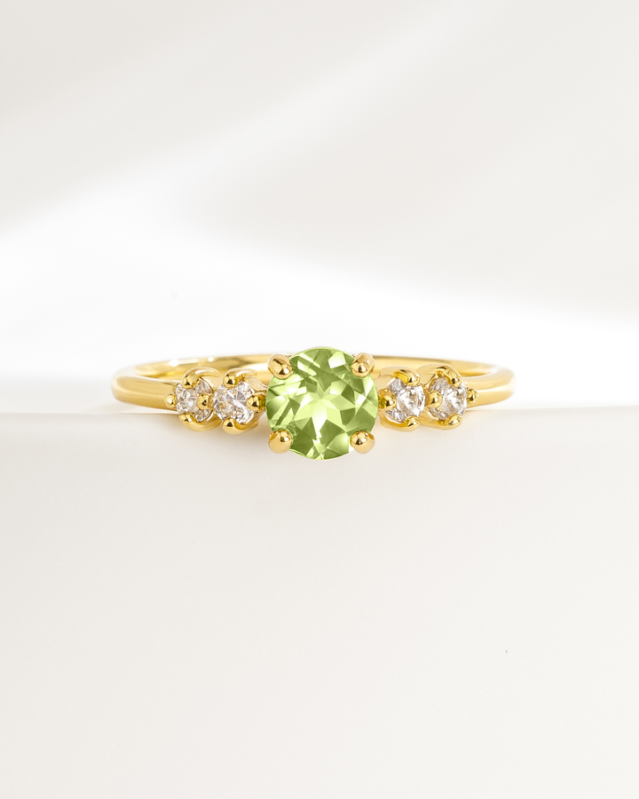 Atemporalmente hermosa, esta alianza de media eternidad con esmeralda y peridoto es perfecta para combinar con un anillo de compromiso o para usar sola. Este precioso anillo presenta una combinación de colores única de esmeralda y peridoto, imprescindible para los amantes de las piedras preciosas verdes.