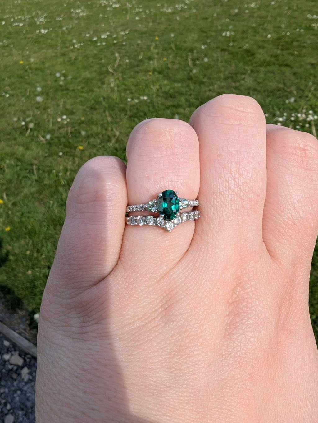 * The model wears size medium on the ring finger (UK N-O/US 7) and size large on the middle finger (UK P-Q/US 8) in the images shown on the product pages. Please note that the gemstones may appear smaller on larger fingers, and may appear larger on smaller fingers as compared to what's shown in our images. Please check the gemstone sizes in the product description for the most accurate measurement.